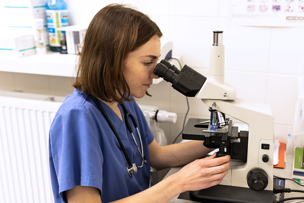 W naszej lecznicy posiadamy wysokiej klasy sprzęt do badań biochemicznych i morfologicznych krwi, aparat do badań hormonów (m.in. T4, kortyzol, progesteron) oraz aparat do badania moczu oraz mikroskop.